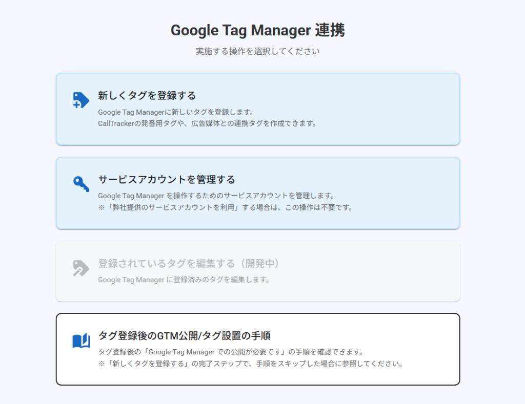 これにより、CallTrackerからGTMにタグを登録できるようになります。