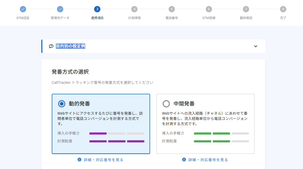 次に、どのような目的で電話計測を行うのかに合わせて、連携内容を選択します。