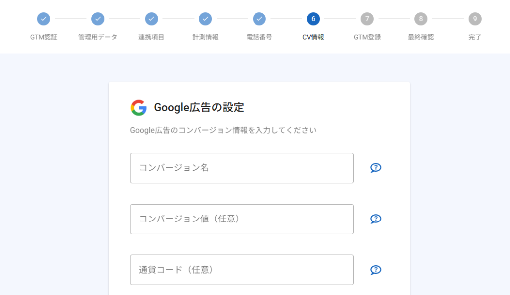 Google広告と連携する場合は、コンバージョン情報を入力します。