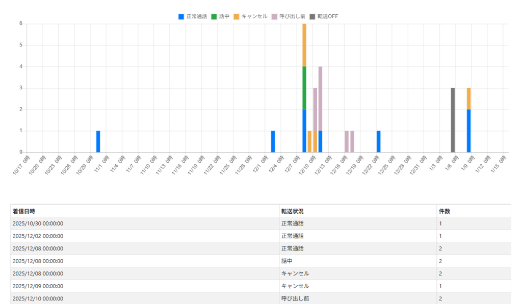 実は、通話ログが管理画面に表示されるまで、約3分ほどのラグがあります。